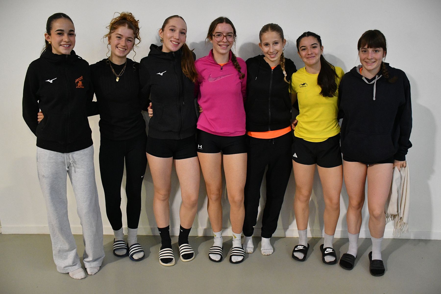 Le groupe des cadettes, symbole de la densité et de la qualité de notre jeunesse janzéenne (image d’Archives, meeting APR, 7 décembre dernier). Seconde photo : Marie Duvigneau devant Clara Liberman, la grosse grosse perf de la journée (photo — magnifique — DR Lénaic Renault).
