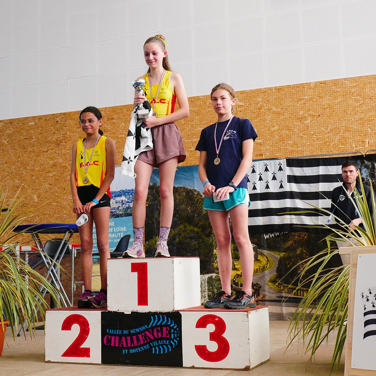 Les courses de Crevin ont aussi été l’occasion pour nos jeunes de s’exprimer, et comme il faut s’il vous plaît. Trois benjamines du club au départ, première et deuxième à l’arrivée ! Bien les filles !!!