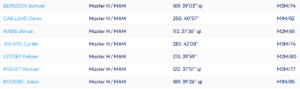 Mention donc à nos masters. Il semble qu’ils soient finalement quatre qualifiés individuels (Sliman Habis, Mickaël Piquet, Samuel Bergeon, Julien Roussel), ce qui au bout du champ nous feras une équipe à Évreux. Dommage que Fabien Letort ait oublié de lacer plus serrées ses chaussures (seul incident du genre de la journée, on progresse !) : nous aurions eu cinq qualifiés… Denis Caillaud et Cyrille Jolivel sont un peu plus loin mais n’ont pas démérité et se sont bien battus. Ils peuvent être fiers de leur parcours.