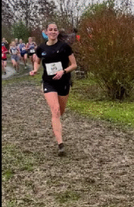 Voici ce qu’elle nous a raconté de son cross : « J’ai eu peur à l’échauffement, j’ai beaucoup sentie mon genou mais ça ne me gênait pas pour courir, j’arrivais à avoir une foulée normale mais avec une belle gêne (à la limite de la douleur). Ensuite je n’ai rien senti pendant la course, j’avais de bonnes sensations. J’ai toujours été avec d’autres filles donc c’était bien et j’ai fini par gagner mon petit sprint final. Le parcours était assez plat mais avec des petites buttes et des petits virages, c’était surtout bien gras.«