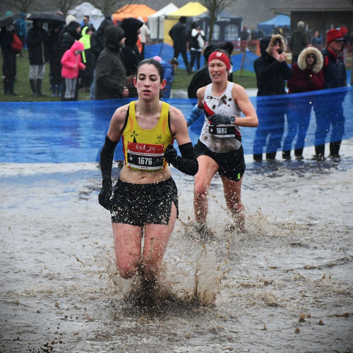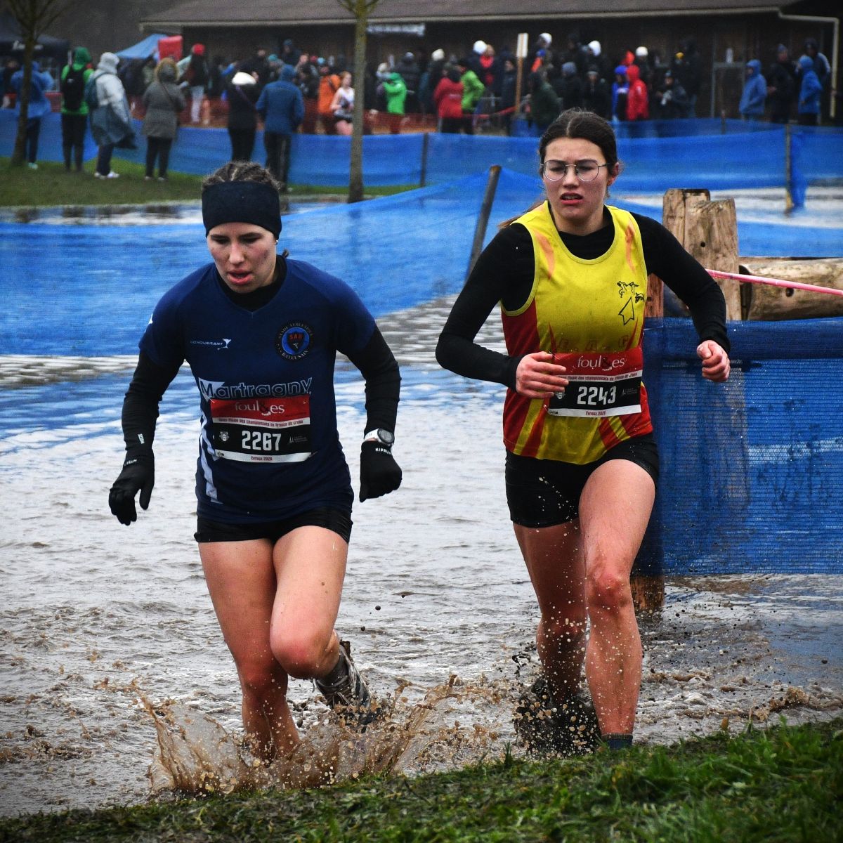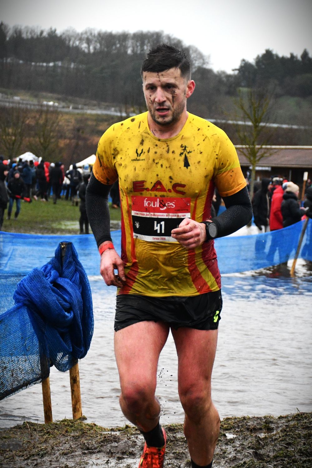 Après le beau parcours de Saint-Onen-La-Chapelle, puis le parcours épique de Carnac, et avant la terre de cross de Carhaix, l’épopée a été convoquée de nouveau ce dimanche à Évreux. Le tracé des circuits était plat, avec juste quelques difficultés techniques, mais la pluie abondante de ces derniers jours a fait déborder le ruisseau qui longe l’hippodrome et remplacé par une mare l’une de ces difficultés mineures. Une mare qui est allée s’amplifiant au fil de la journée et à la fin ressemblait davantage à un étang. A un autre endroit, des fondrières sont apparues, gorgées d’eau. Si bien qu’il s’en est suivi un festival spectaculaire de chutes, glissades, dérapages plus ou moins contrôlés, et montées de genoux improvisées dans une eau parfois à mi-cuisses, évidemment glacée (voir photos ci-dessous). On a éprouvé quelquefois de la pitié, ou au moins de la compassion, pour des concurrents maculées et/ou transis de froid, mais aussi de l’admiration pour leur courage et leur capacité à résister à la souffrance.