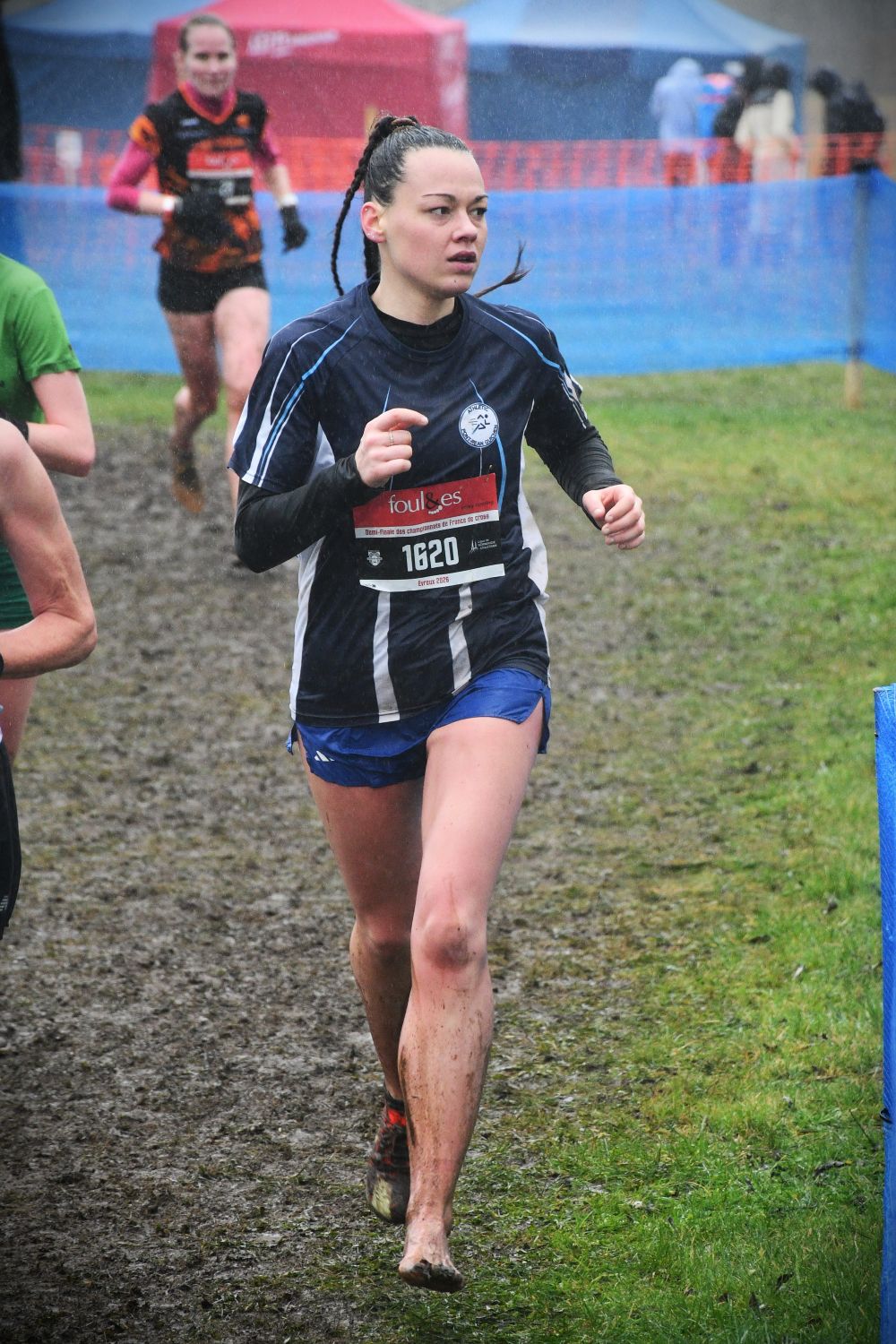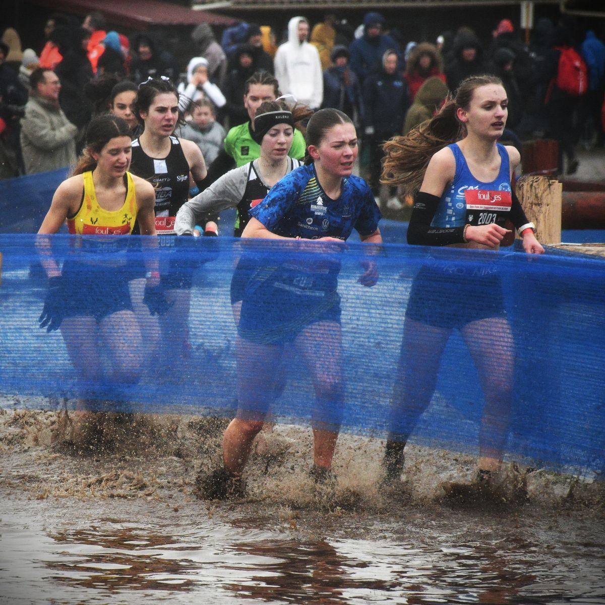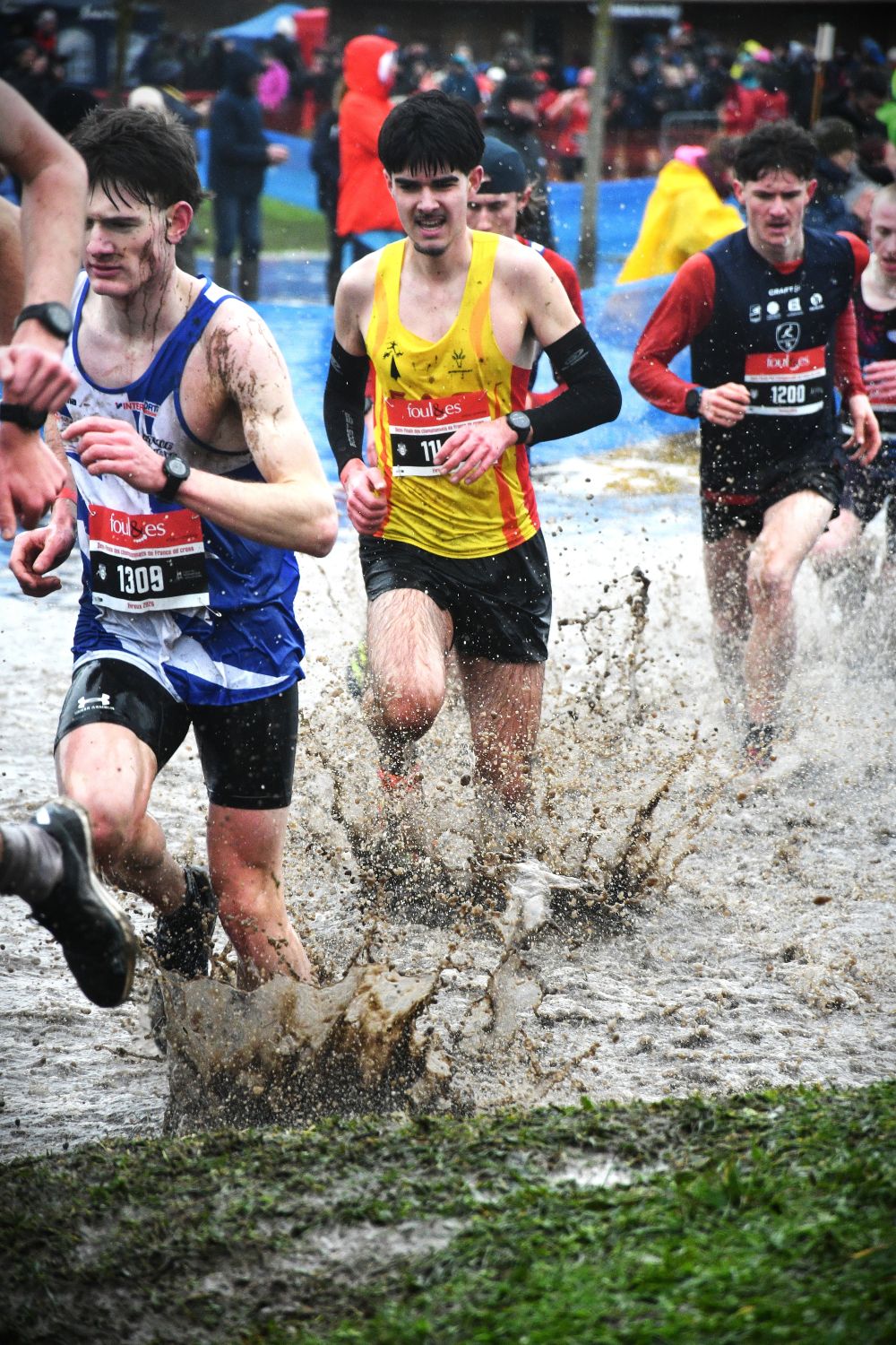 Après le beau parcours de Saint-Onen-La-Chapelle, puis le parcours épique de Carnac, et avant la terre de cross de Carhaix, l’épopée a été convoquée de nouveau ce dimanche à Évreux. Le tracé des circuits était plat, avec juste quelques difficultés techniques, mais la pluie abondante de ces derniers jours a fait déborder le ruisseau qui longe l’hippodrome et remplacé par une mare l’une de ces difficultés mineures. Une mare qui est allée s’amplifiant au fil de la journée et à la fin ressemblait davantage à un étang. A un autre endroit, des fondrières sont apparues, gorgées d’eau. Si bien qu’il s’en est suivi un festival spectaculaire de chutes, glissades, dérapages plus ou moins contrôlés, et montées de genoux improvisées dans une eau parfois à mi-cuisses, évidemment glacée (voir photos ci-dessous). On a éprouvé quelquefois de la pitié, ou au moins de la compassion, pour des concurrents maculées et/ou transis de froid, mais aussi de l’admiration pour leur courage et leur capacité à résister à la souffrance.