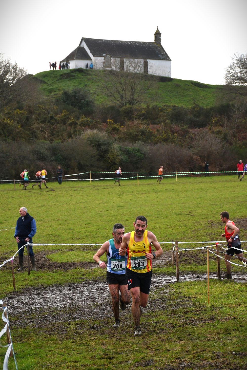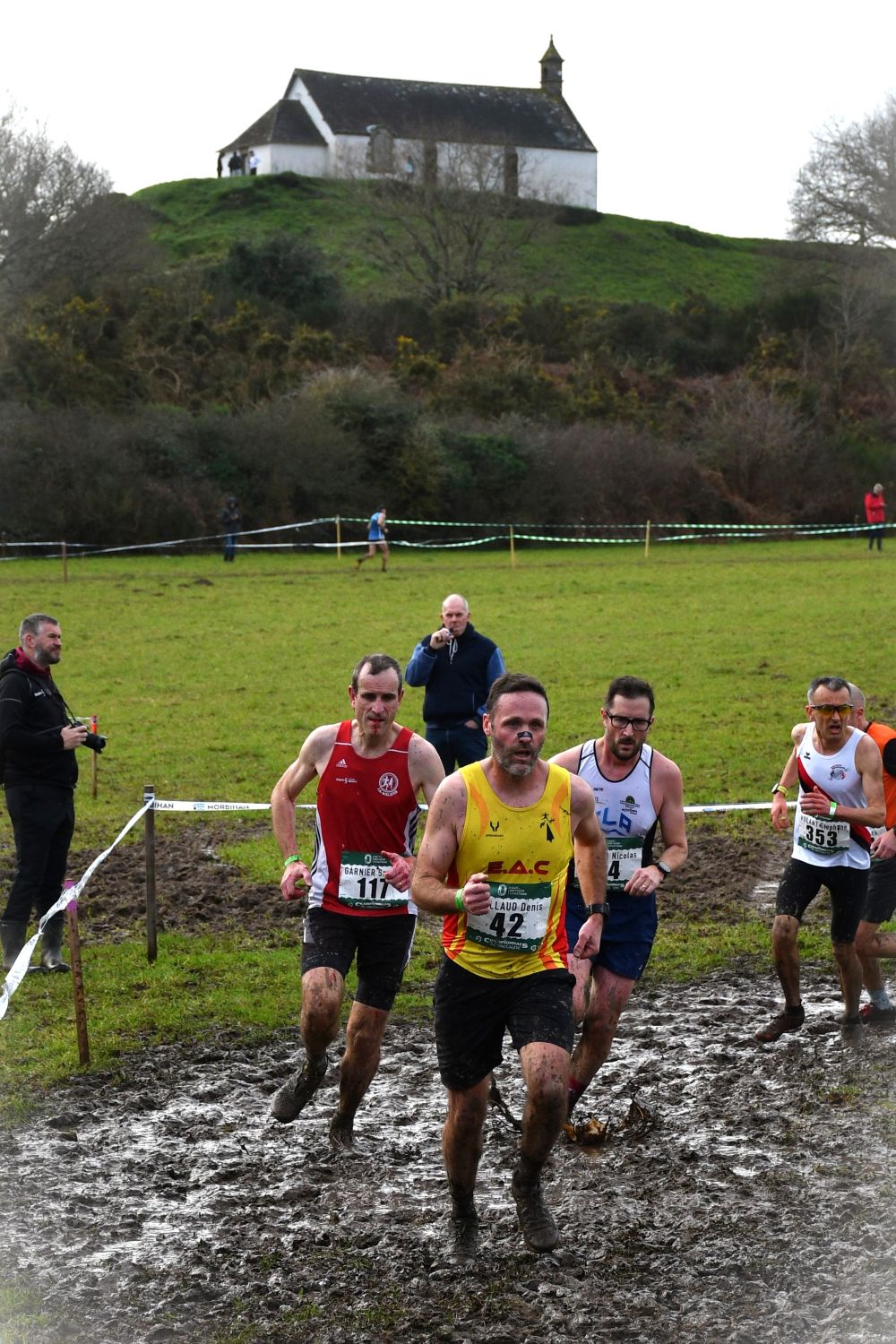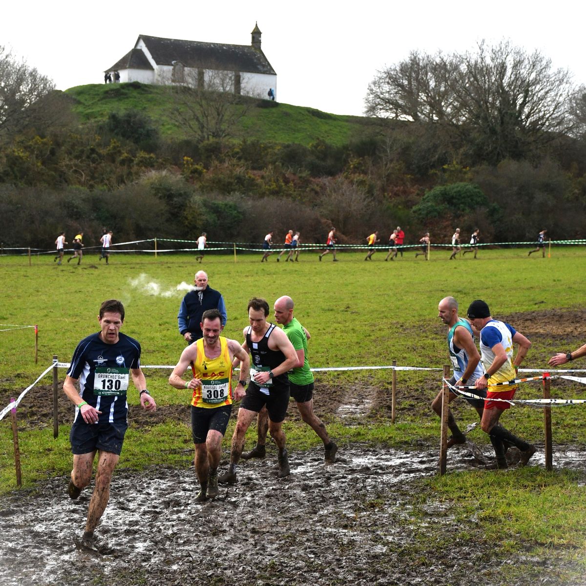 Bon, on se calme, mais c’est vrai quand même que, grâce à nos 300 valeureux masters, on a su très vite où était le parcours : il suffisait de suivre la tranchée boueuse. Comme les 300 spartiates au défilé des Thermopyles ont écrit leurs noms dans le sable avec du sang, nos 300 masters bretons (de manière plus pacifique) ont inscrit leurs pas dans une boue immémoriale, inscrite depuis l’an passé au patrimoine mondial de l’Unesco.