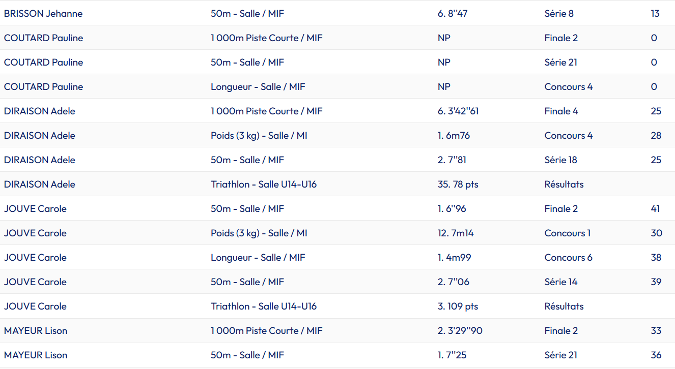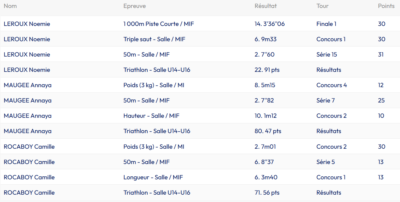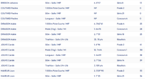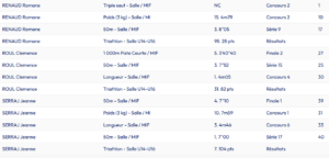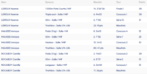 Les filles ont fait le déplacement également : Albane Michel est 56e avec 47 points sur le triathlon / 57e avec 60 points sur le pentathlon), Laura Gadby 60e avec 42 points (54e / 62 points) et Zoé Tortellier 64e avec 41 points (61e / 59 points).