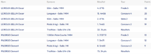 A noter également la belle 20e place au triathlon de Yanis Leroux (86 points / 17e au pentathlon avec 121 points) et la 34e de Nathaël Cherruault (60 points / 31e du pentathlon avec 85 points). Adrian Launay a complété l’équipe (60e avec 36 points / 55e au pentathlon avec 56 points). C’est très bien, les garçons, bravo !