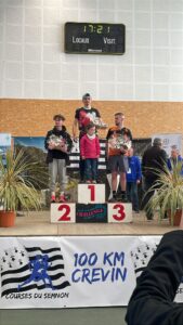 Oyez, oyez, Matthis et Martin ont (encore) frappé ! un magnifique podium trusté par deux oranges. Respectivement 1er et 3ème du presqu’11 km de Crevin. On avait demandé des podiums au scratch en début de saison à l’AG, on y arrive presque tous les week-ends. Bravo les gars ! Après sa déconvenue à Martigné sur la course de La Forge, Matthis était revanchard et a remis les pendules à l’heure. On avait déjà repéré les qualités de Martin, sa 3ème place ne vient que confirmer sa belle progression. Attention Matthis, y a un p’tit jeune qui monte !!! bah oui, il n’y a pas beaucoup d’écart niveau âge mais quelques mois ça compte ! On n’oublie pas Raymond l’infatigable qui décroche une 1ère place dans sa catégorie ! ça faisait un moment que ça ne lui était pas arrivé, il pourra l’apprécier d’autant plus. Bravo pour finir à Ludivine qui « finiche » en 1h10 son parcours.