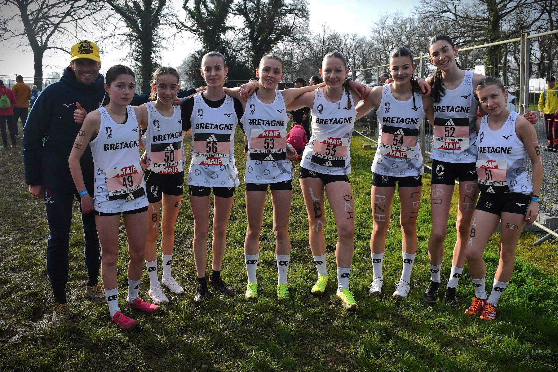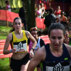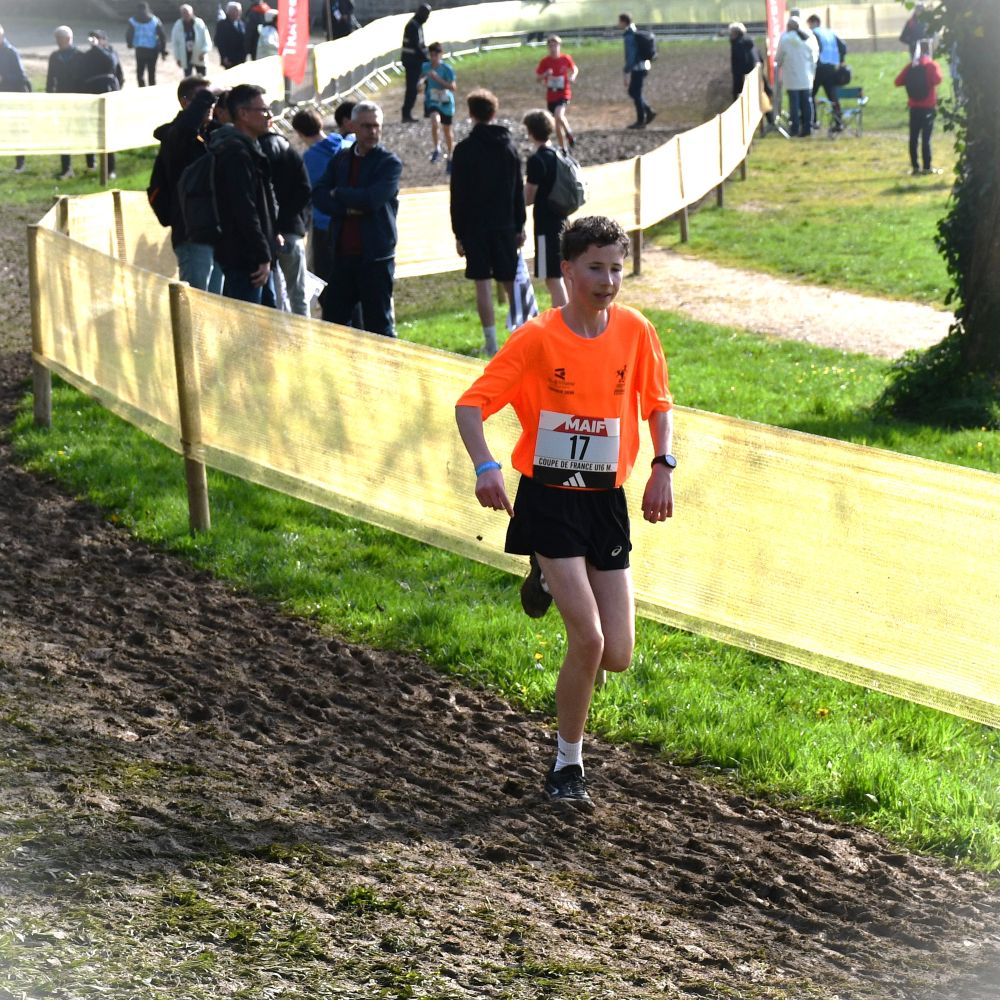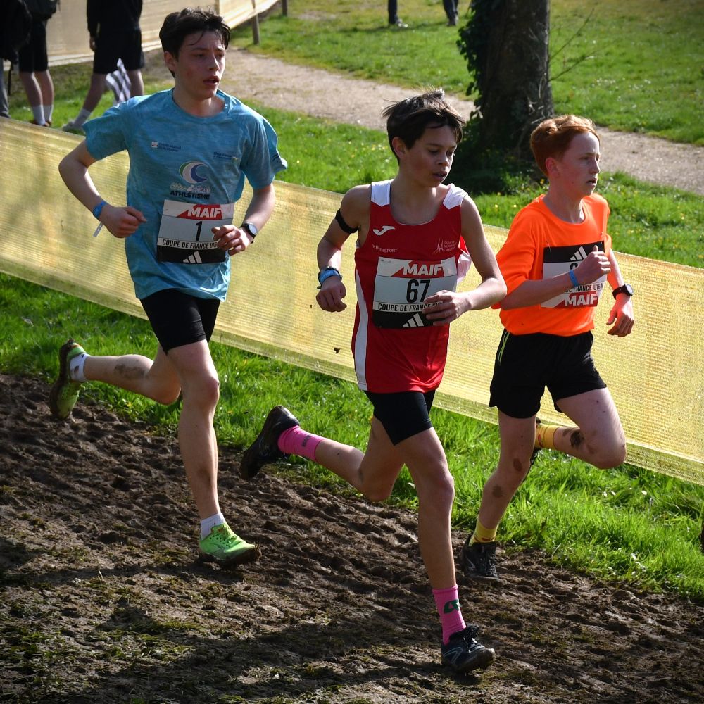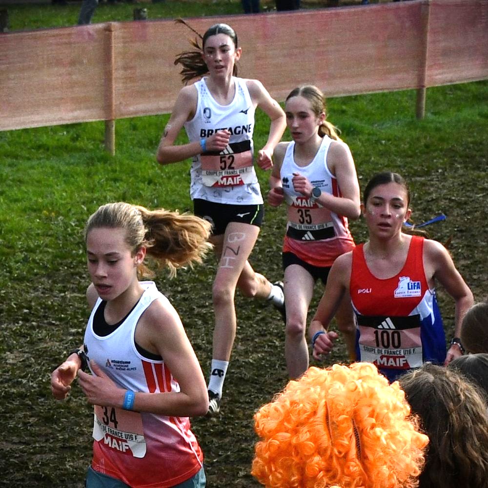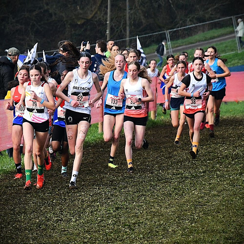 Tout avait bien commencé au cross de Janzé le 13 décembre, avec une facile victoire, mais la suite a été plus difficile pour Rose Mahé (Bain) : battue à la régulière par Elisa Meigne à Saint-Onen, la confiance lentement acquise tout l’automne, avec une très belle saison en UGSEL (vice-championne de France de cross en minimes), s’est fissurée. Le Régional à Carnac n’a pas aidé, avec une blessure au genou dans la semaine et un parcours très gras, pénalisant pour sa belle foulée aérienne (5e). En panne d’assurance, elle est restée en retrait du groupe de tête à Évreux et revient au sprint à la toute fin, mais trop tard (4e). On espérait qu’à Carhaix, libérée, elle allait retrouver l’envie, la confiance et la performance, mais la pression a été la plus forte, et le désir de faire mieux que l’an passé à Challans (30e) est devenu une barrière, infranchissable. Elle est l’une des seules minimes filles à ne pas s’être écroulée de fatigue et de douleur une fois franchie la ligne. Fraîche encore, elle finit 35e, loin, trop loin. Elle est la 6e de l’équipe de Bretagne et rate de peu le podium (l’équipe est 4e). Heureusement les garçons gagnent et les deux équipes ensemble sont 2e au classement mixte. Rose est donc finalement montée sur la boite et ramène une 2e médaille nationale collective, après celle de l’an passé (l’équipe filles avait fini 3e). L’ensemble de sa saison reste belle, mais il va falloir maintenant se libérer la tête pour l’été. Penser à autre chose. Et recommencer à s’amuser.
